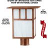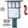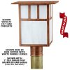 10″ Width LED 120V/12V/277V LED Premium Brass, Copper or Stainless Steel Flat Roof Craftsman Style Post Top Light. Fits over standard 3″ Diameter posts / poles. Made out of Heavy Duty Solid Brass (finished in the color of your choice), Raw Copper (unfinished) or Stainless Steel (unfinished) with glass or acrylic lenses of your choice, this light fixture carries a LIFETIME GUARANTEE against rust and corrosion. These LED lights are as bright as 40-200 watt incandescent lights yet consume at least 85% less power! Go green and save $$$. Go LED!