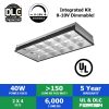 We offer this light in two different configurations: Non-Integrated (standard) and Integrated Kit (optional). The 51 Watt Standard Non-Integrated option uses three (3) 4 Foot 17 Watt LED T8 Tubes, and is non-dimmable. The Integrated Kit option offers all the functionality of integrated lights, 0-10V dimming, etc. Easy to install with three (3) 4 foot linear light bars that simply “stick” to the lights (magnetic backing) and wire to an included external 0-10V dimming driver.