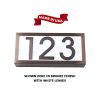 LED 12V or 120V Premium Brass, Copper or Stainless Steel Three (3) Digit 11″ x 6″ Surface Mount Craftsman Style Address Light. Made out of Heavy Duty Solid Brass (finished in the color of your choice), Raw Copper (unfinished) or Stainless Steel (unfinished), this fixture carries a LIFETIME GUARANTEE against rust and corrosion. In LED, these lights are as bright as 15-70 watt incandescent lights yet consume at least 85% less power, not to mention with LED you will change the bulbs every 10-20 years instead of every 6-12 months! Go green and save $$$. Go LED!