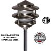 LED 12 Volt (standard) or 120 Volt (optional) Stainless Steel 3-Tier Pagoda Light. Made out of Super Heavy Duty 304 Stainless Steel (unfinished), this light fixture carries a LIFETIME GUARANTEE against rust and corrosion. These LED lights are as bright as 15-50 watt incandescent lights yet consume at least 85% less power! Go green and save $$$. Go LED!
