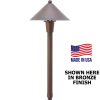 LED 12 Volt (standard) or 120 Volt (optional) Brass, Copper or Stainless Steel Large Classic Cone Style Landscape Area Path Light. Made out of Heavy Duty Solid Brass (finished in the color of your choice), Raw Copper (unfinished) or Stainless Steel (unfinished), this light fixture carries a LIFETIME GUARANTEE against rust and corrosion. These LED lights are as bright as 15-50 watt halogen lights yet consume at least 85% less power! Go green and save $$$. Go LED!