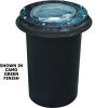 LED 100-130VAC, 170-240VAC or 265-277VAC Cast Aluminum Large Open Face In-Ground Well Light. Made out of Heavy Duty Cast Aluminum finished in the color of your choice with a tempered glass lens, this light fixture carries a LIFETIME GUARANTEE against rust and corrosion. This LED In-Ground Well Light is as bright as 90-500 watt Halogen or 35-175 Watt HID lights yet consume at least 85% less power! Go green and save $$$. Go LED!