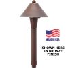 LED 12 Volt (standard) or 120 Volt (optional) Brass, Copper or Stainless Steel Petite Classic Cone Style Landscape Area Path Light. Made out of Heavy Duty Solid Brass (finished in the color of your choice), Raw Copper (unfinished) or Stainless Steel (unfinished), this light fixture carries a LIFETIME GUARANTEE against rust and corrosion. These LED lights are as bright as 15-50 watt halogen lights yet consume at least 85% less power! Go green and save $$$. Go LED!